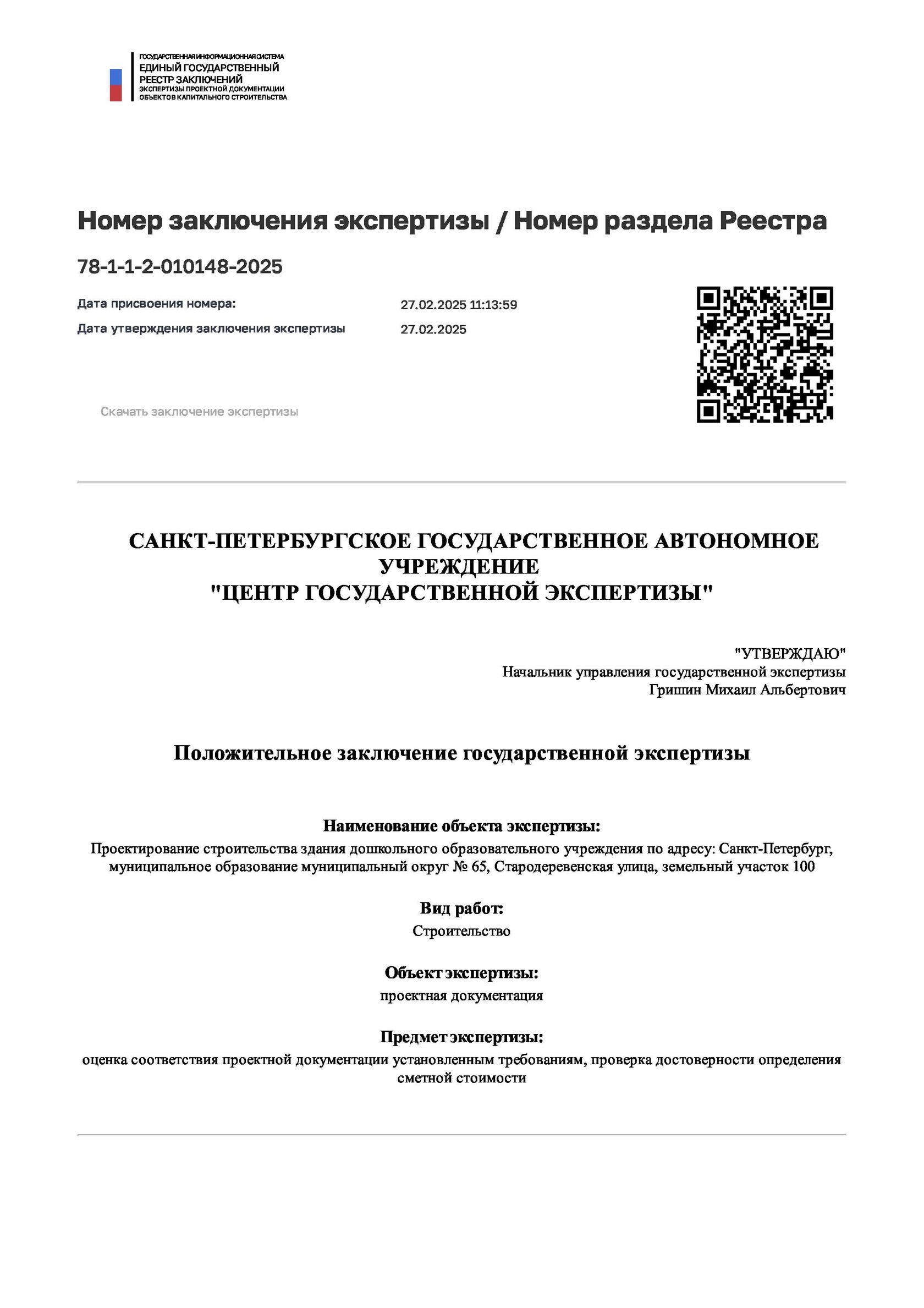 Проект разработан ООО "ГрадстройПроект" по заданию Санкт-Петербургского государственного казенного учреждения "Фонд капитального строительства и реконструкции".